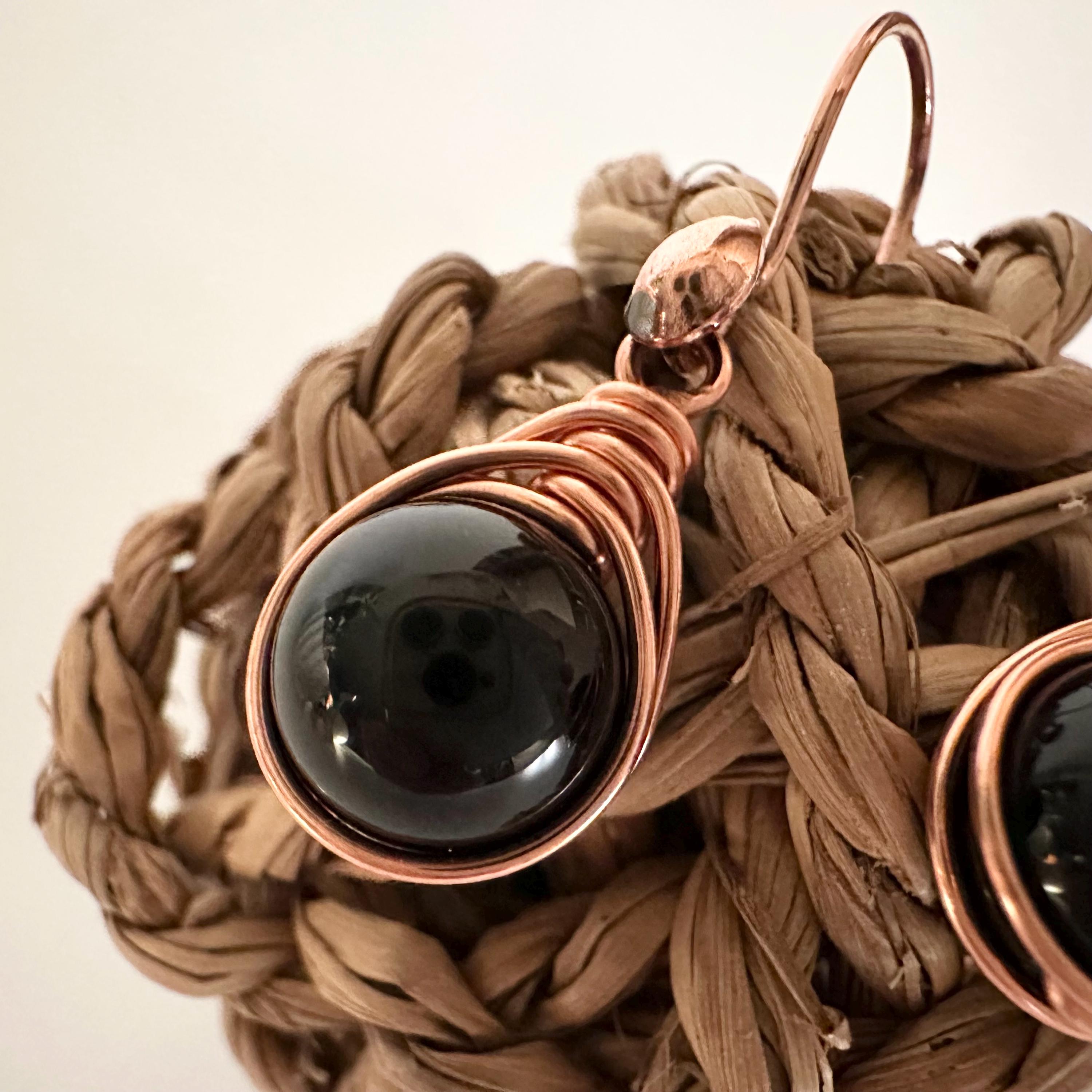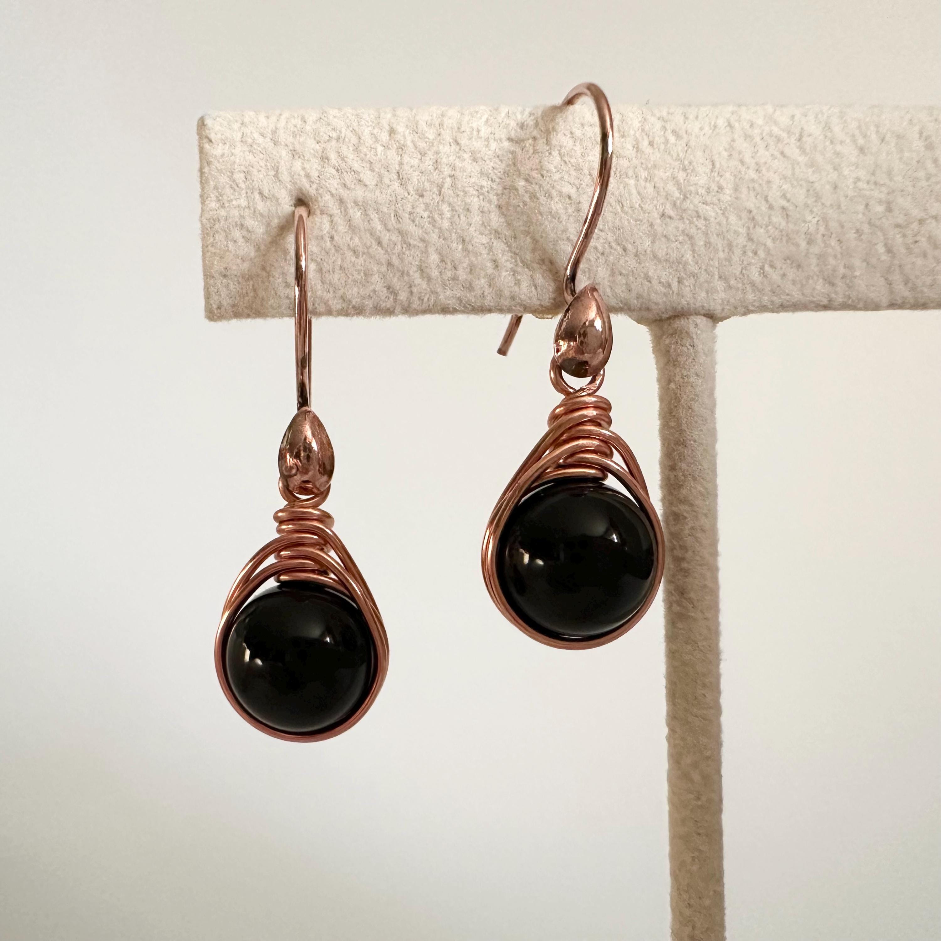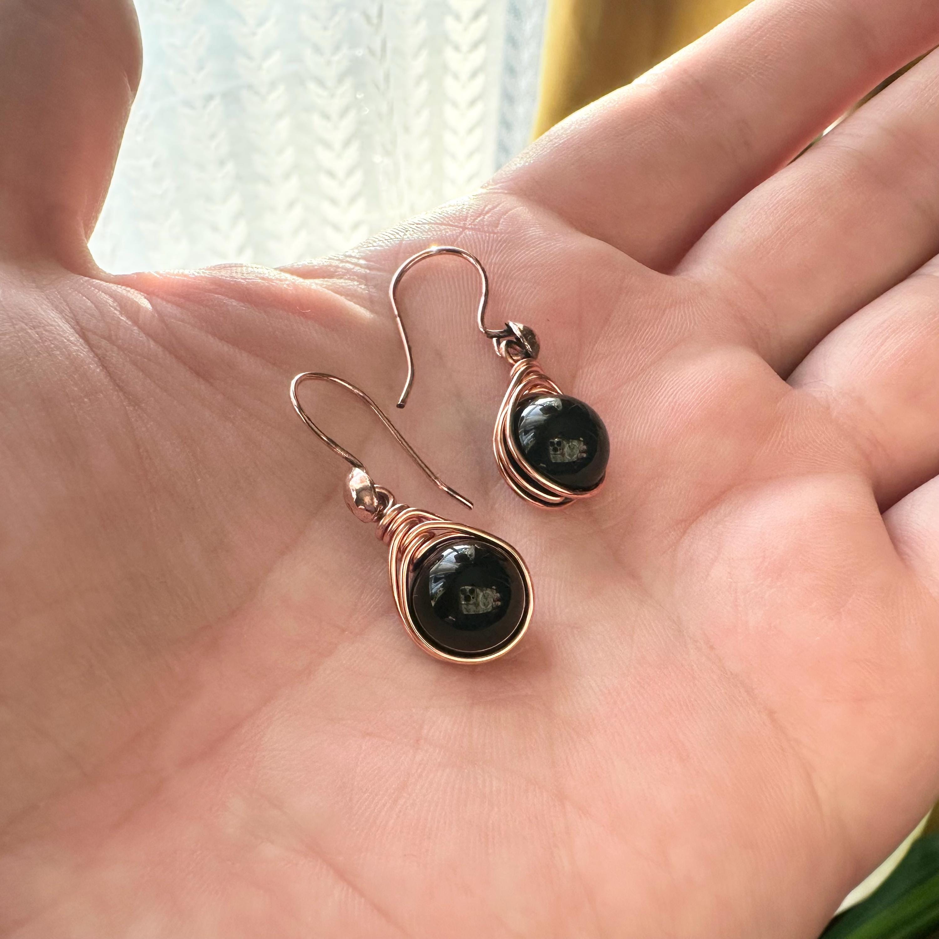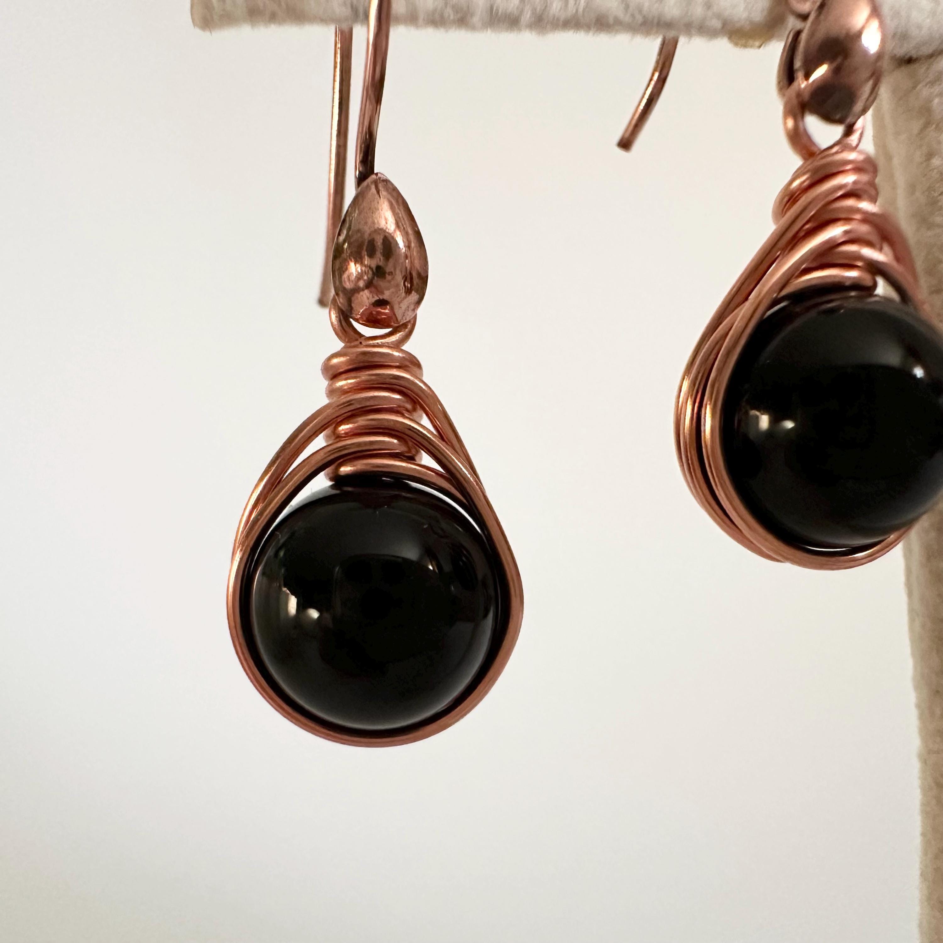 Midnight black onyx teardrops with copper wire. These are hand-wrapped and finished with copper ear-wires. Simplistic yet elegant.
